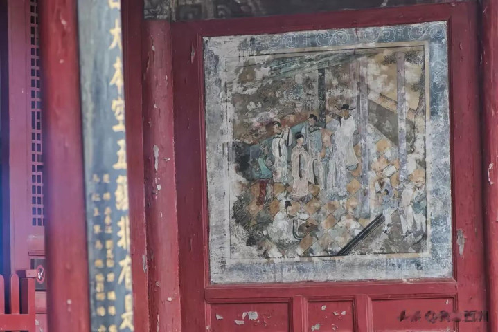 寺中特色还有精美的清代壁画,大雄宝殿旁的壁画勾勒细致,用笔淡雅,是李世民接见玄奘师徒取经归来的场景,画面栩栩如生。