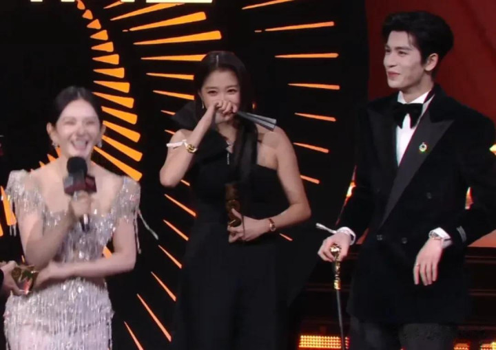 接下来谢娜老毛病又犯了,关晓彤、张凌赫先后出场,被主办方安排了尴尬表演环节,关晓彤害羞捂脸、张凌赫努力控制表情不破功,这时候最是需要主持人缓和气氛,结果镜头给到谢娜,她完全忘记了控场,站在台上看热闹一直笑个不停。