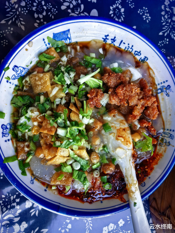 出去玩,就爱吃没有吃过的特色,比如这个豆腐脑,真是和我们陕西的不一样,用味精鸡精,大头菜老抽,炒黄豆或炒花生米作底,勺上大半碗的用骨头汤勾芡的淀粉浓汁,在用平勺削几片雪白的豆花放在浓汁之上,最上面有翠绿香菜或芹菜,色香味俱全。