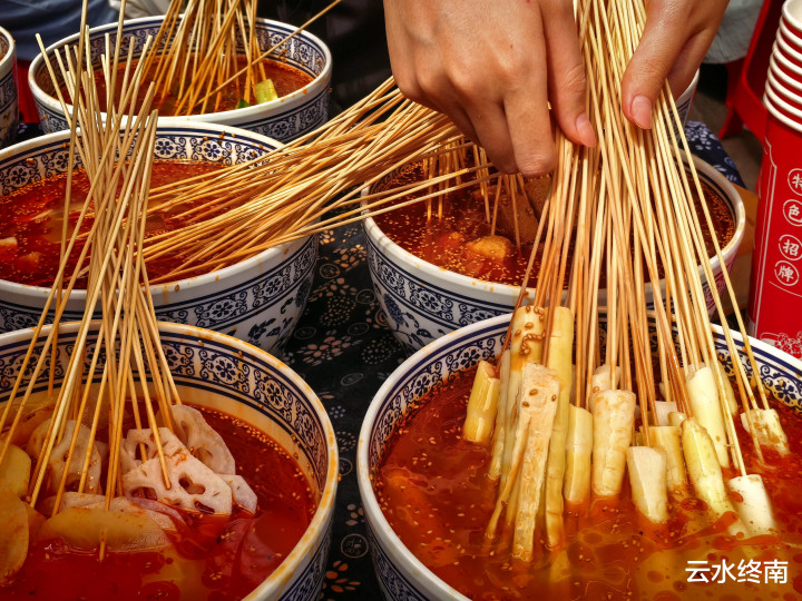 乐山钵钵鸡,麻辣爽口,食用方便,一人吃几串。