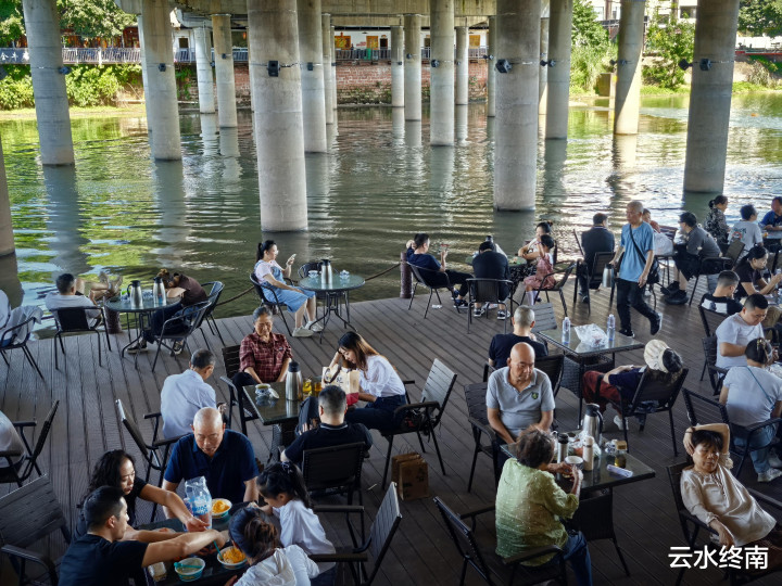 大桥下的茶摊也是人多,苏稽古镇人真是太多了。