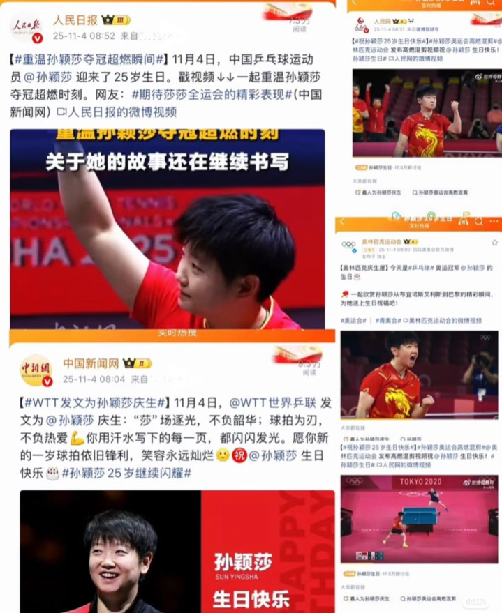 今天又是一个特殊的日子,孙颖莎的生日,全网粉丝都在给莎莎祝福生日。莎莎代言的产品商家就更不用说了,都是斥巨资有排面的。官媒也发来祝福。